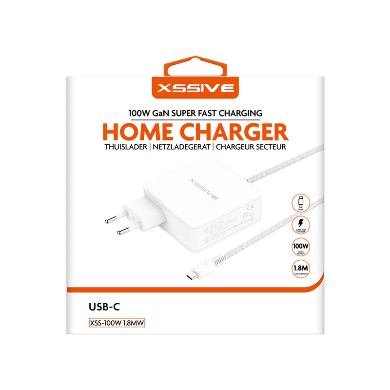 Xssive 100W GaN Super Snelle USB-C Thuislader – Wit (XSS-100W 1.8MB)