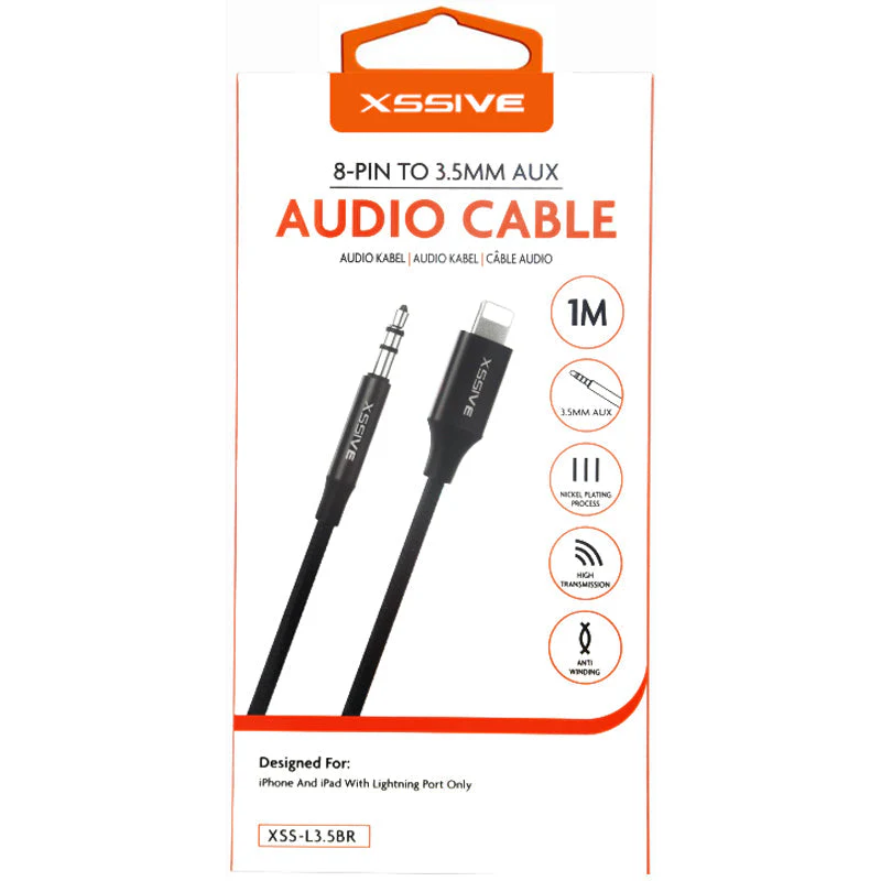 Xssive Braided Aux Cable 8-Pin to 3.5 Aux 1m. XSS-L3.5BR