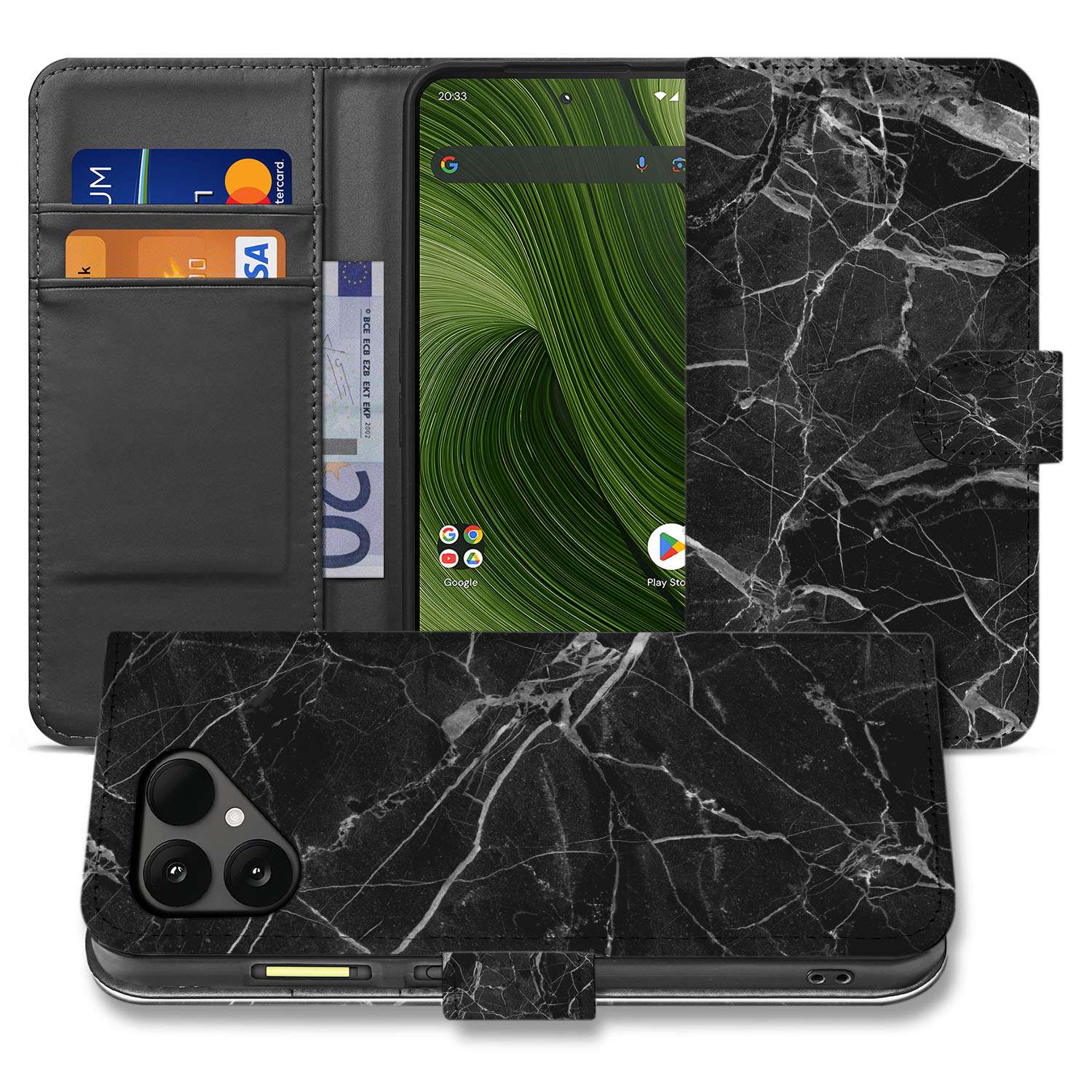 Zwart Marmer Met Pasjesvak Luxe Fairphone 6 | Portemonnee Hoesje