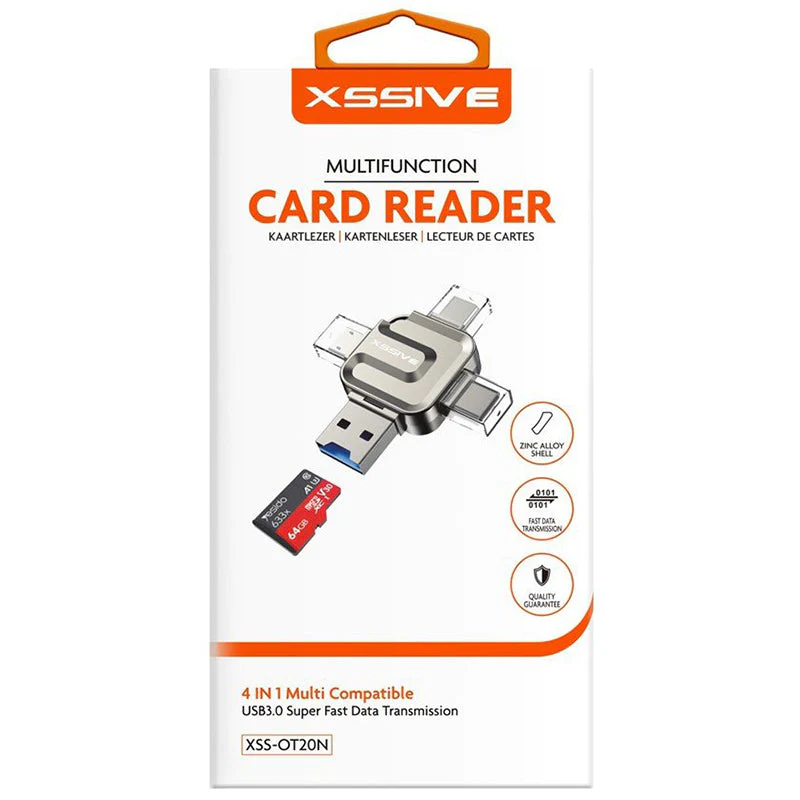 Xssive 4-in-1 Multifunctionele card reader – USB, USB-C, microUSB, Lightning – XSS-OT20N