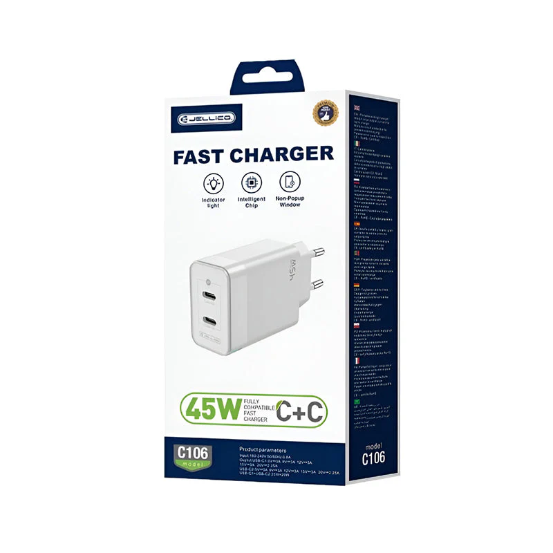 GaN PD+PD 45W 2 ports fast charging Adaptor – Jellico C106
