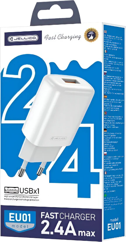 Complete wall charger 2,4 A(USB-A adaptor + Type-C Kabel) – jellico EU01 Kit