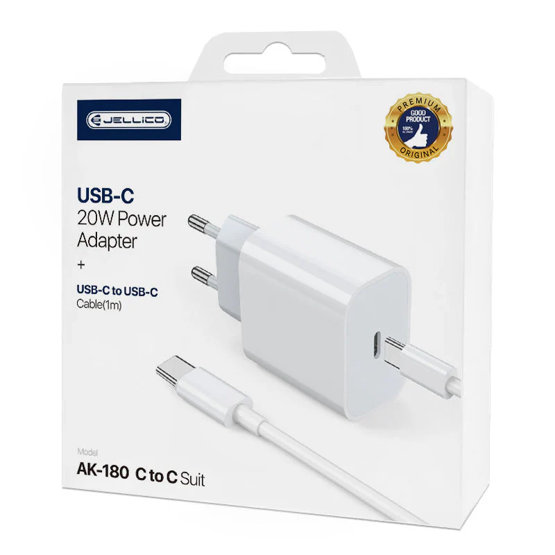 Complete wall charger PD 20W ( USB-C adaptor + Type-C – C kabe) – Jellico AK180 kits