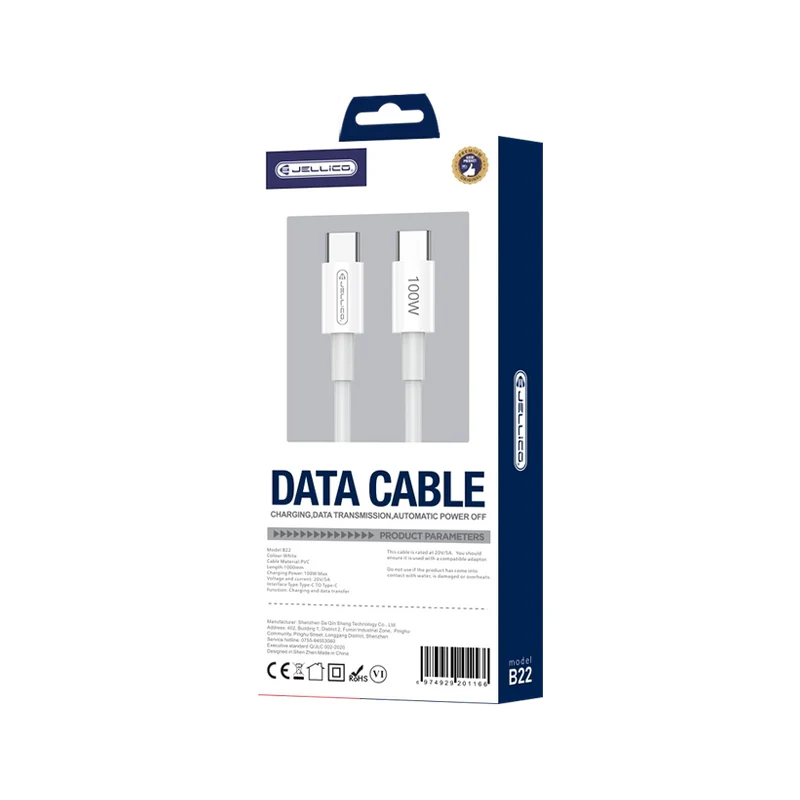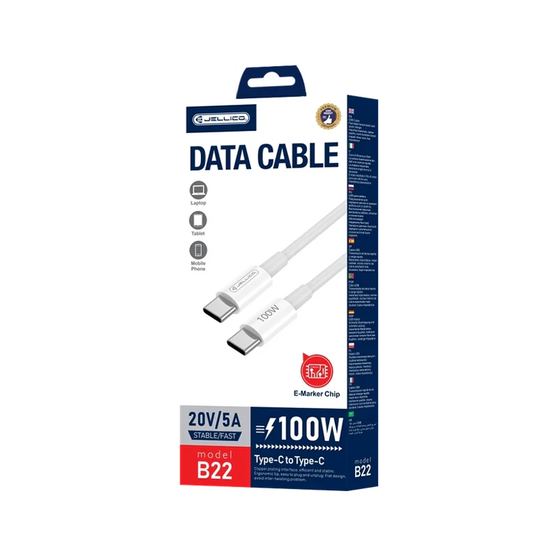 Met de 100W PD Type C to Type C Cable B22 van Jellico heb je alles wat je nodig hebt voor snelle en efficiënte oplading van je apparaten. Krachtig, veelzijdig en duurzaam – de ideale kabel voor al je opladingbehoeften!