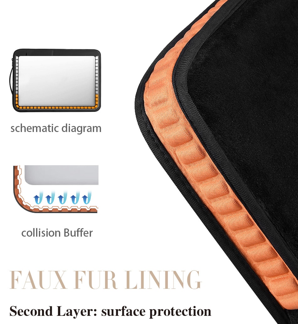 De sleeve is gemaakt ter bescherming van de laptop. Het stijlvolle ontwerp in combinatie met bescherming maakt deze sleeve ideaal voor dagelijks gebruik. Deze sleeve beschikt ook over een handige handvat. De ritssluitingen zijn gemaakt door het gerenommeerde YKK bedrijf dat sinds 1934 gespecialiseerd is in het maken van ritssluitingen. Kwaliteit alom! De binnenkant bestaat uit nep bont wat heerlijk zacht aanvoelt. Zo voorkom je krassen en schade aan de laptop. De schokbestendige materialen in de hoeken voorkomen schokgolven door het apparaat heen bij een harde val.