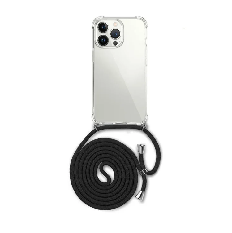 Dit siliconen hoesje met koord is geschikt voor de iPhone 14 Pro Max. De case is doorzichtig en heeft schokabsorberende randen die je toestel rondom beschermen tegen vallen, stoten en krasjes. Handige uitsparingen zorger ervoor dat je van smartphone kunt blijven genieten zonder het hoesje te moeten verwijderen. Dankzij het handige touwtje kun je het hoesje makkelijk om je nek of schouder hangen.