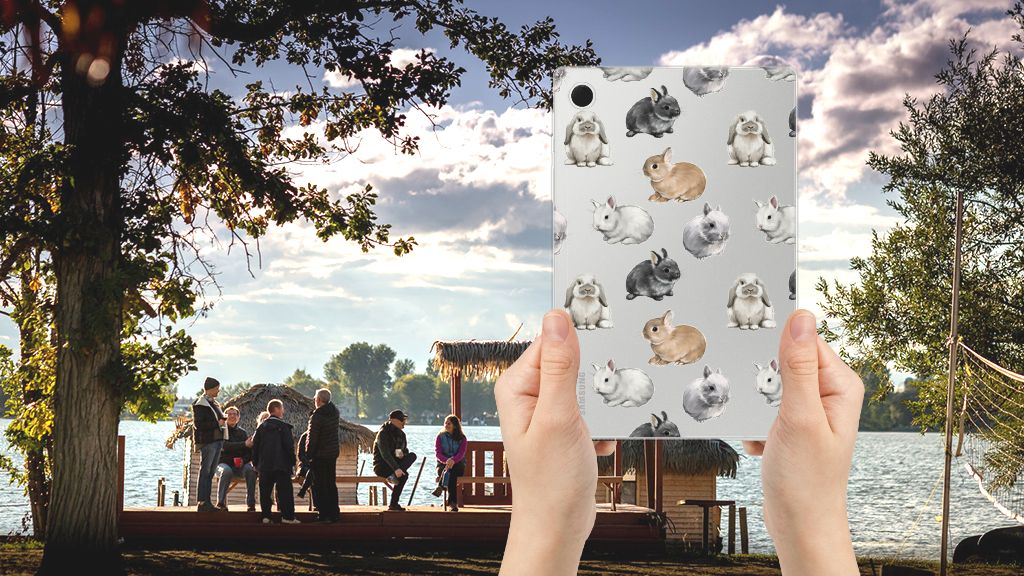 Wist je dat er wel 50 verschillende konijnenrassen zijn die zich onderscheiden in kleur, vacht, bouw en formaat? Daarom kon dit design met konijntjes eigenlijk niet ontbreken in onze collectie hoesjes. Wij zijn in ieder geval helemaal verliefd op deze schattige konijntjes. Dit design wordt geprint op een Back Case speciaal op maat gemaakt voor de Samsung Galaxy Tab A8 2021/2022. Het ligt prettig in de hand en is licht van gewicht. Alleen de achterkant van je tablet wordt beschermd. Daarom adviseren wij om dit hoesje in combinatie met een screenprotector te gebruiken. Bescherm jouw tablet vandaag nog met dit super schattige hoesje met konijntjes!