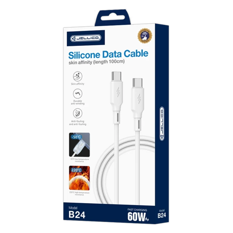 De Jellico B24 is een hoogwaardige siliconen USB-datakabel van 100 cm die ontworpen is voor snel opladen en stabiele gegevensoverdracht. Dankzij de zachte, flexibele en knoopvrije siliconenmantel is de kabel ideaal voor dagelijks intensief gebruik thuis, op kantoor of in de auto.