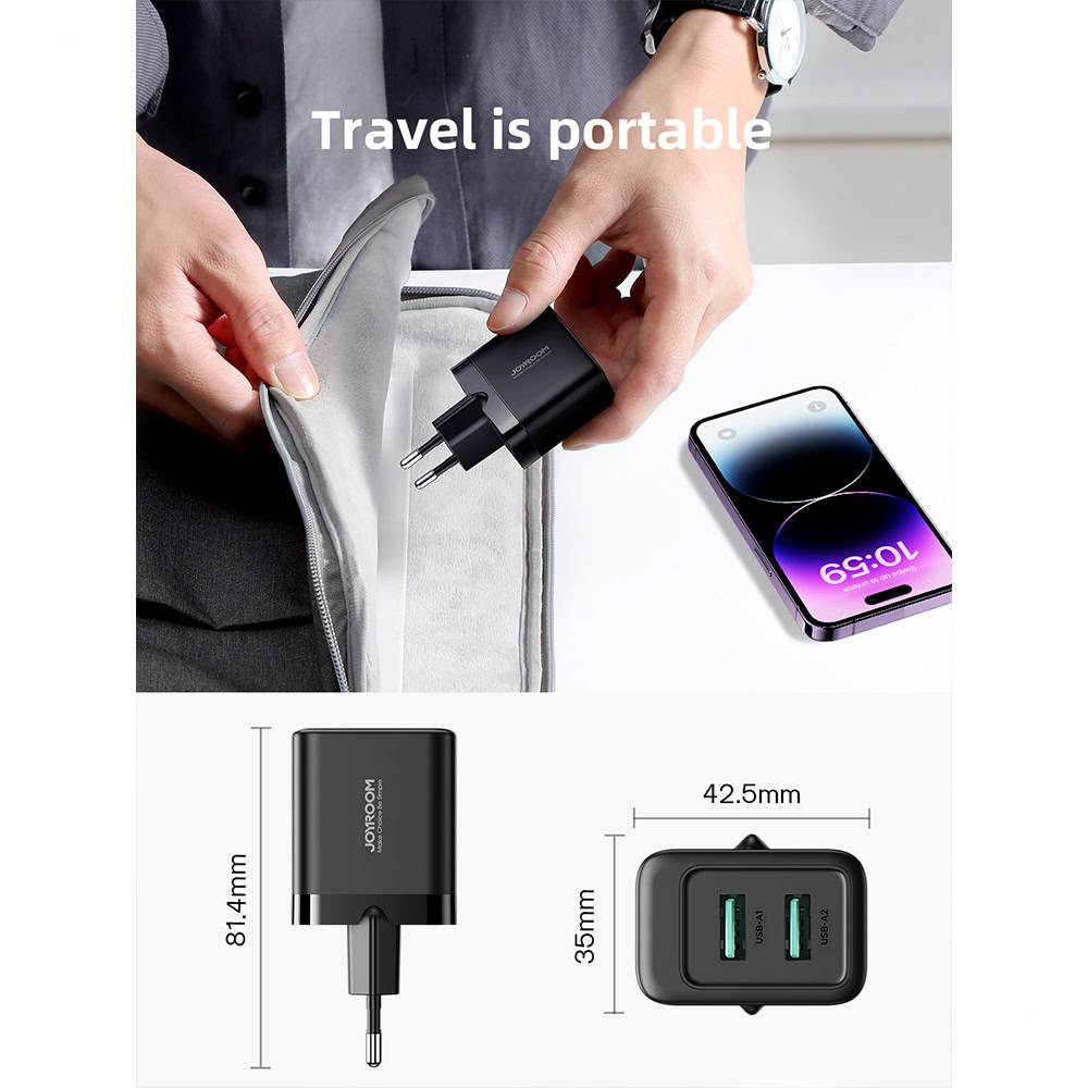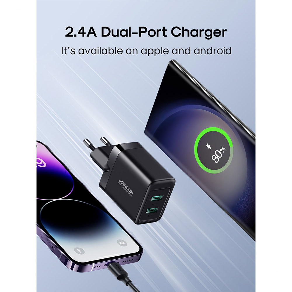 Joyroom 2 Poorten USB-A Oplader 12W – Zwart