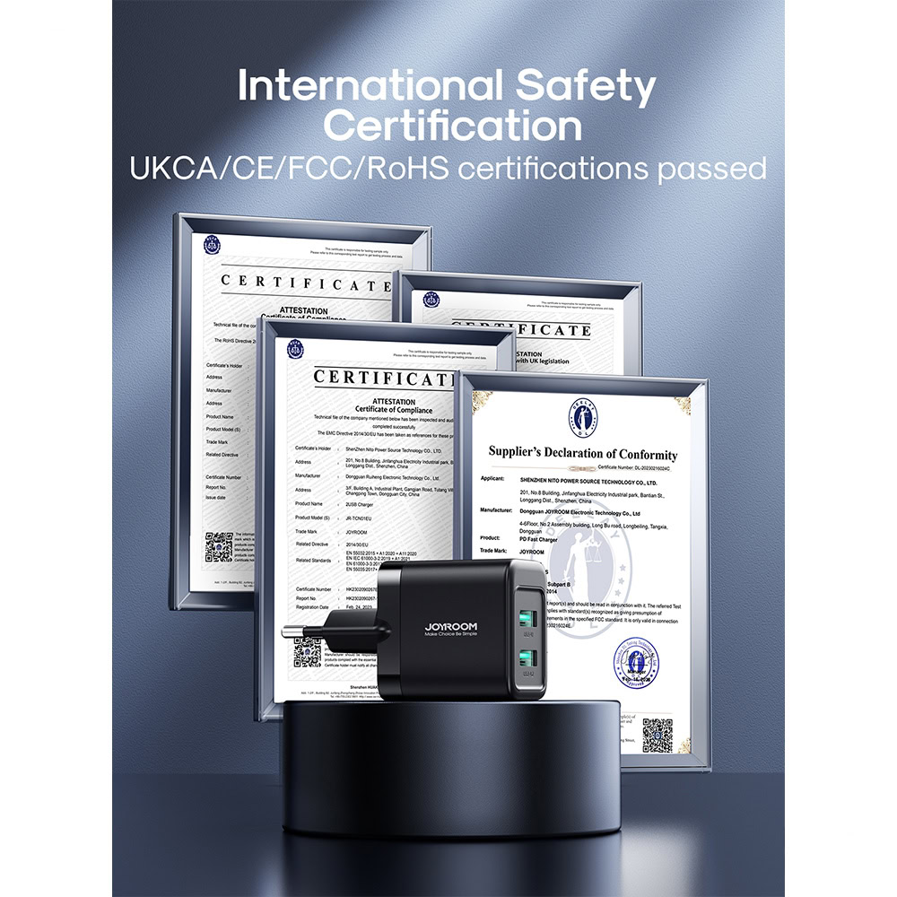Uitgerust met een slimme chip die bescherming biedt tegen overbelasting, oververhitting en kortsluiting, zodat je apparaten veilig blijven tijdens het opladen.