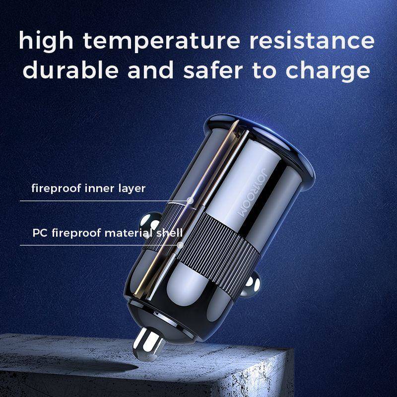De autolader heeft twee USB-poorten, zodat je twee apparaten tegelijkertijd kunt opladen. De interne chip zorgt voor veilig opladen door de spanning te scheiden in beide poorten. De autolader is bestand tegen hoge temperaturen, dus het opladen verloopt altijd probleemloos.