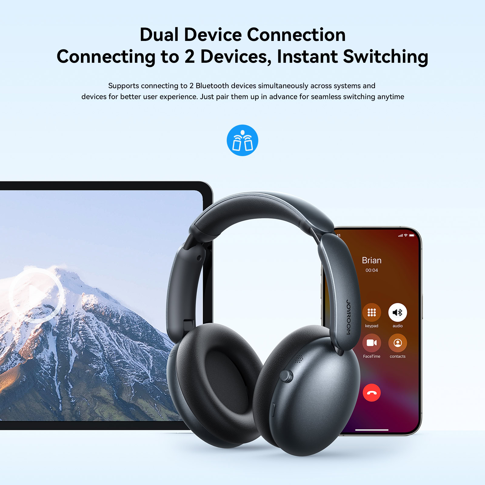 Maak verbinding met twee apparaten tegelijk, zoals je telefoon en laptop, en wissel moeiteloos tussen gesprekken en muziek zonder opnieuw te hoeven verbinden.