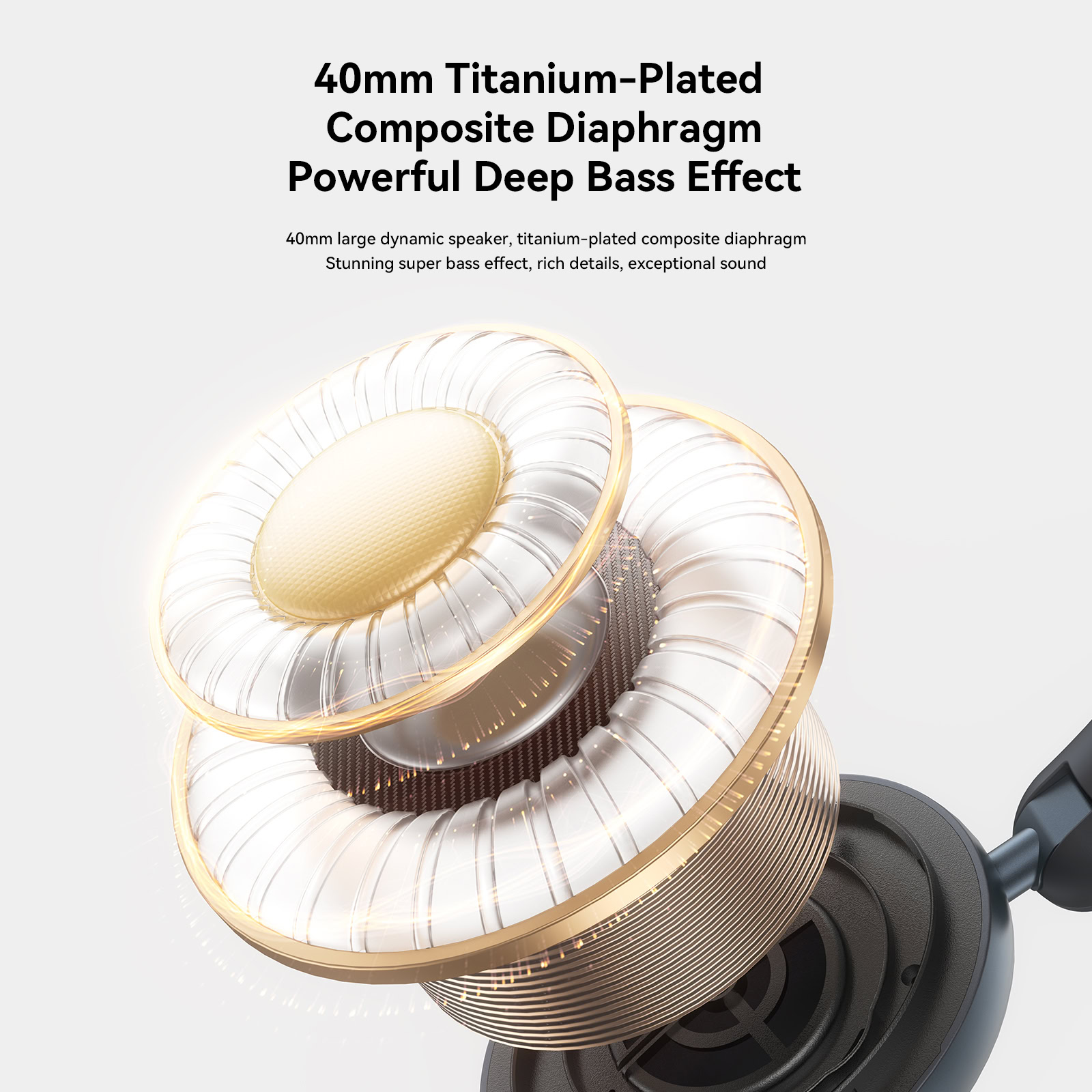 De 40mm titanium-geplateerde drivers zorgen voor krachtige bassen, rijke details en een meeslepende geluidservaring.