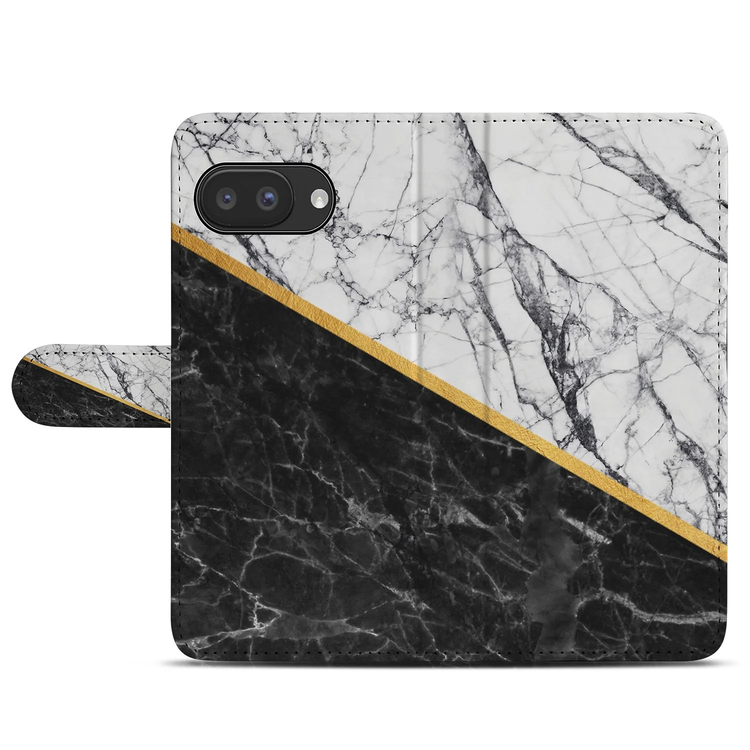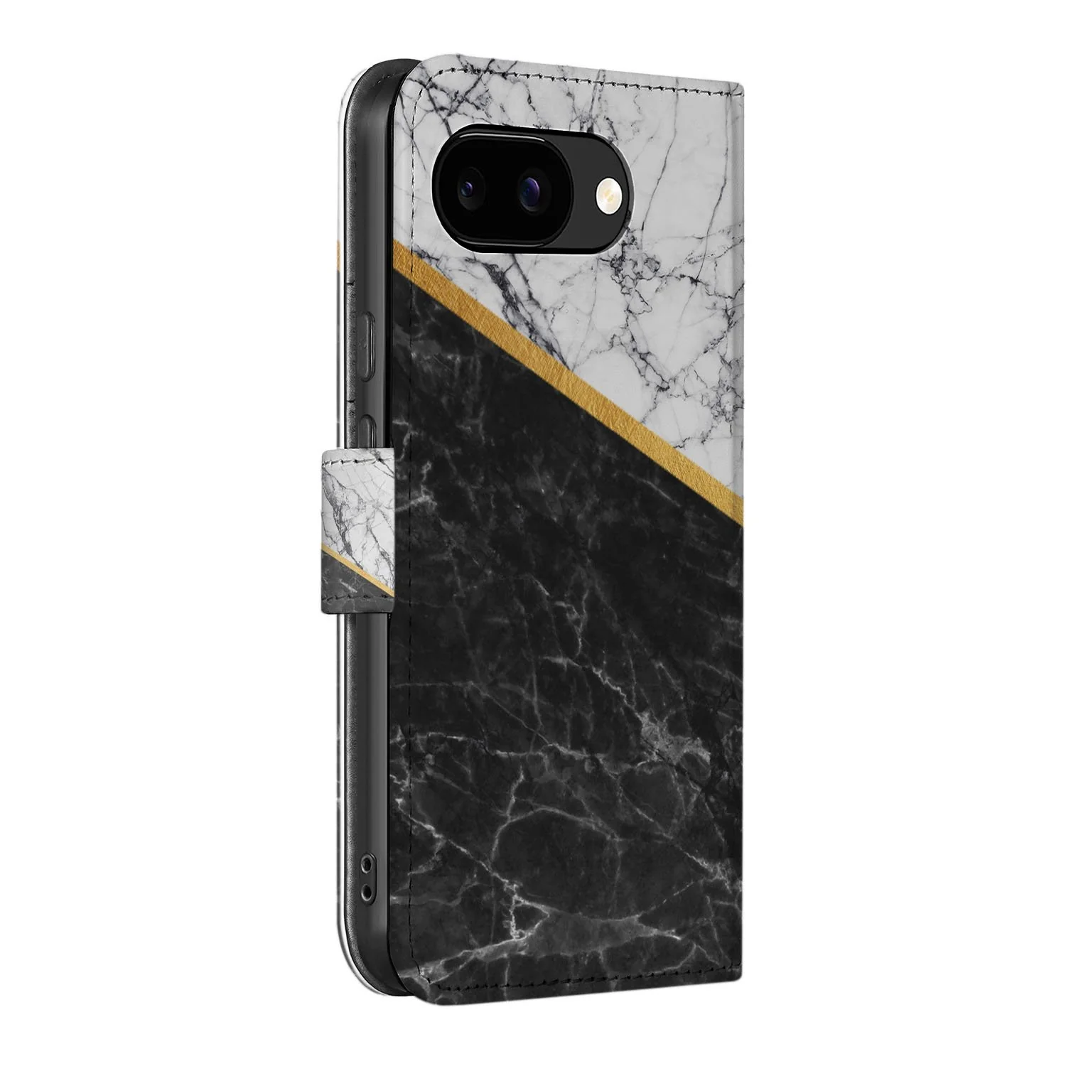 Marmer Wit-Zwart met Gouden Lijn — Book Case Hoesje voor Google Pixel 9a