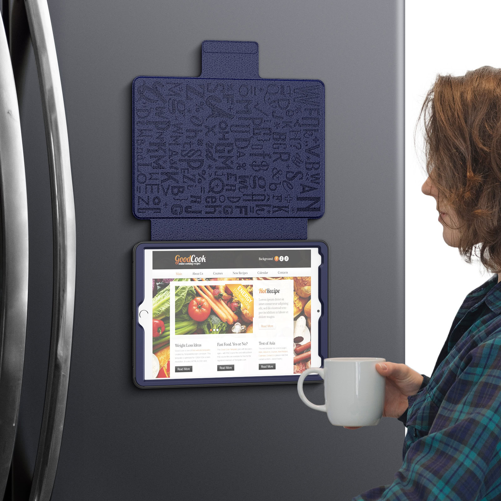- Magnetische Bevestiging: Dankzij de krachtige ingebouwde magneten kan de hoes stevig aan metalen oppervlakken, zoals een koelkast, worden bevestigd. Ideaal om handsfree video’s te bekijken of recepten te volgen in de keuken.