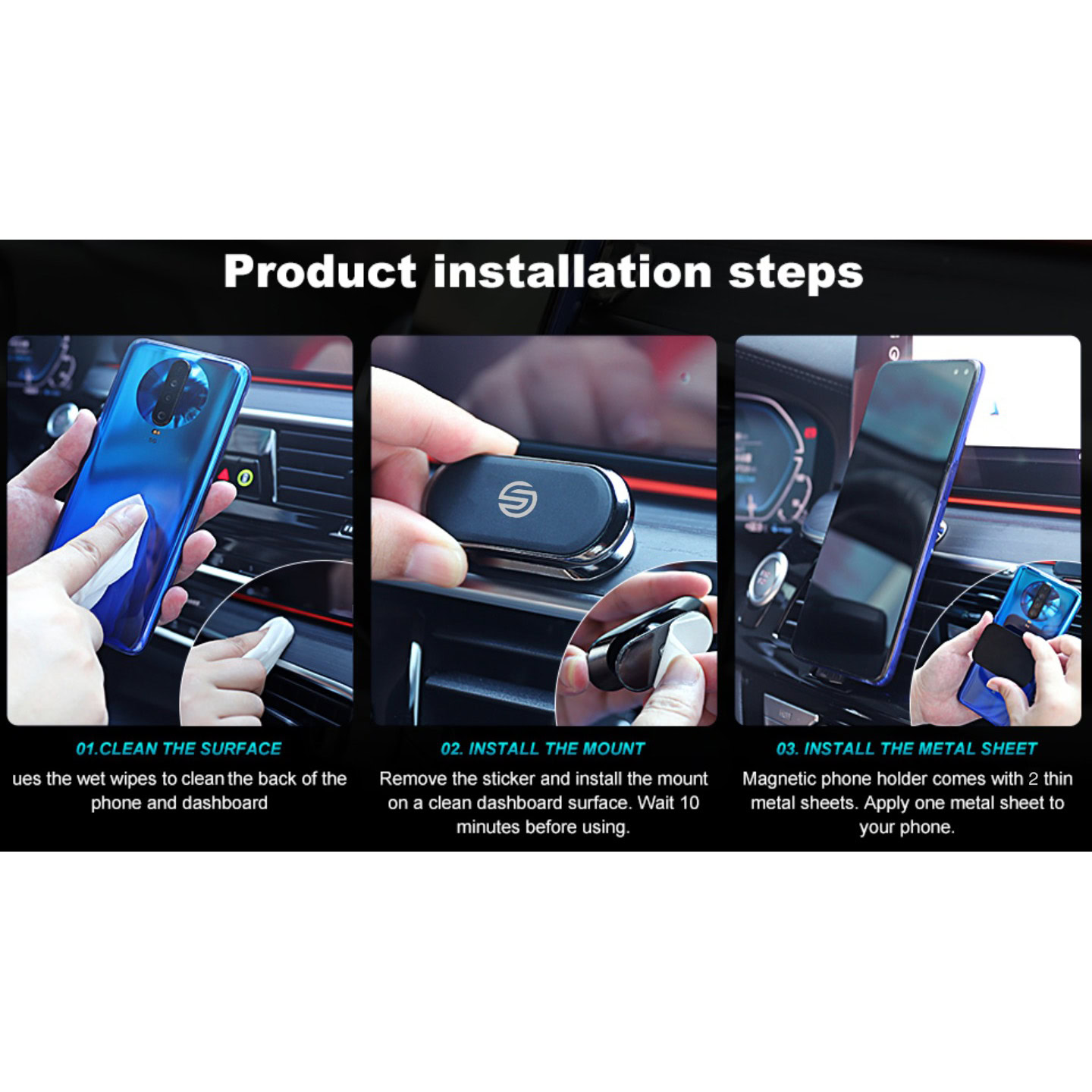 - Inhoud: magnetische houder en een metalen plaat voor de telefoon