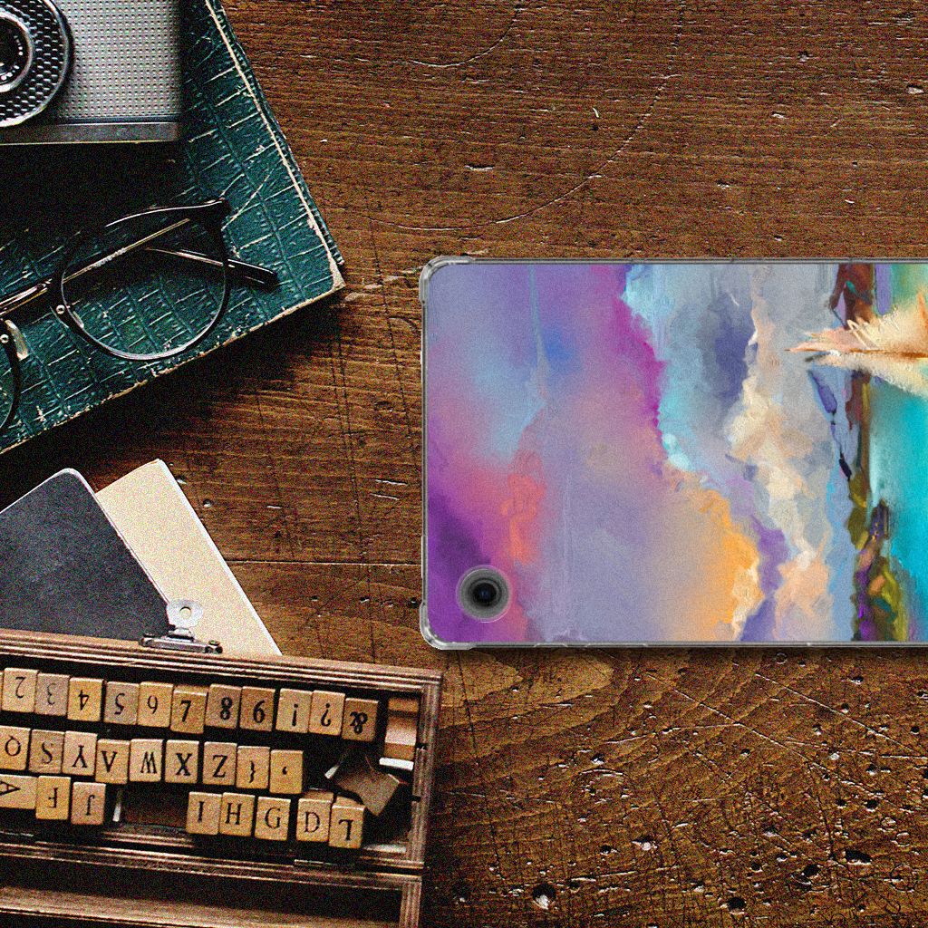 Het mooie ontwerp op dit hoesje zou je zo aan de muur willen hangen. Dit abstracte ‘schilderij’ van een bootje op een meer valt op vanwege de prachtige tinten blauw en paars. Een prachtig hoesje voor de liefhebber van kunst, boten en landschappen. Met een Tablethoes is je Samsung Galaxy Tab A9 goed beschermd. De hoes voor de tablet is gemaakt van TPU, een flexibel maar heel erg sterk plastic dat niet kapot te krijgen is. De inkt die we gebruiken kan in het begin een sterke geur afgeven. Dit is echter tijdelijk en niet schadelijk voor de gezondheid. Na een kleine week verdwijnt de geur vanzelf. We adviseren om dit type hoesje te combineren met een screenprotector, zodat je scherm ook goed beschermd is tegen krassen en beschadigingen.