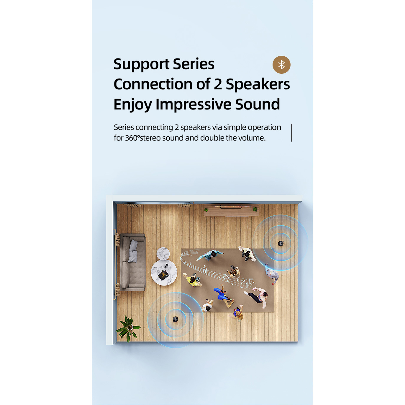 De 360° surround sound biedt een expansieve geluidsweergave met helderheid, aangenaamheid en levendigheid. Je wordt omringd door een volledig meeslepende muziekervaring.