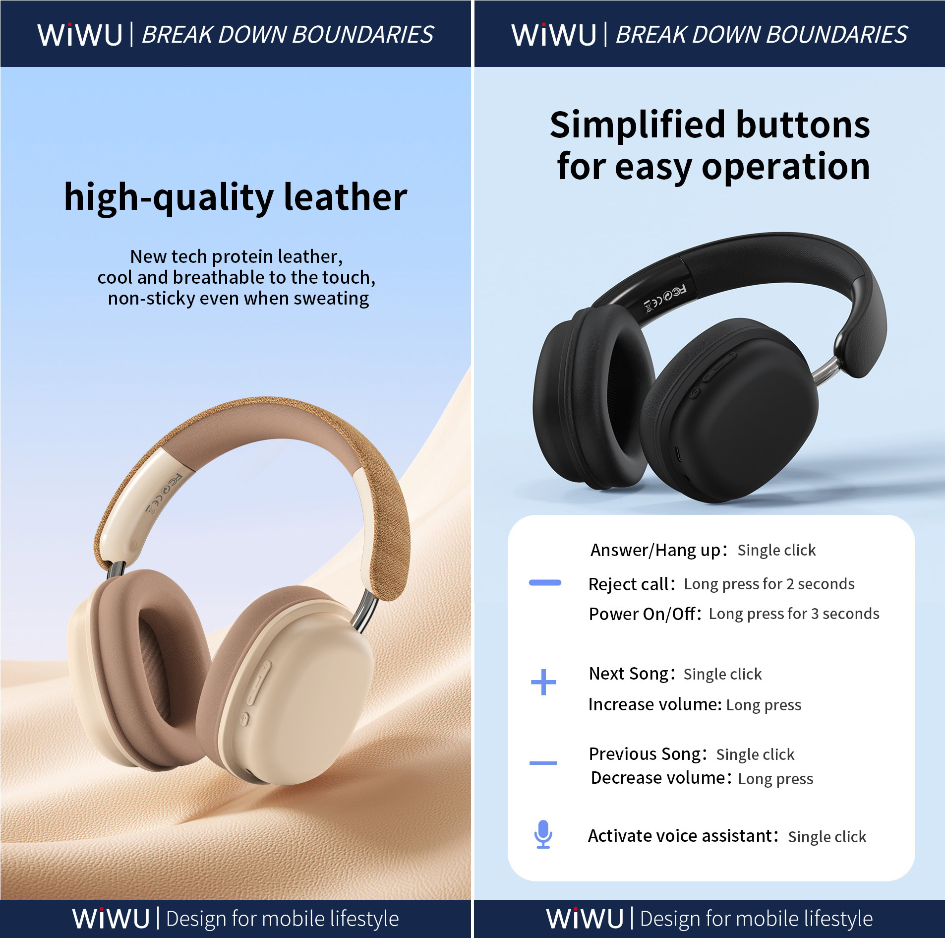 De WiWU TD-05 Headset is een comfortabele over-ear Bluetooth koptelefoon voor muziek, bellen, thuiswerken en reizen. Dankzij Bluetooth 5.3 geniet je van een stabiele verbinding (tot ca. 10 meter) en een fijne draadloze luisterervaring.