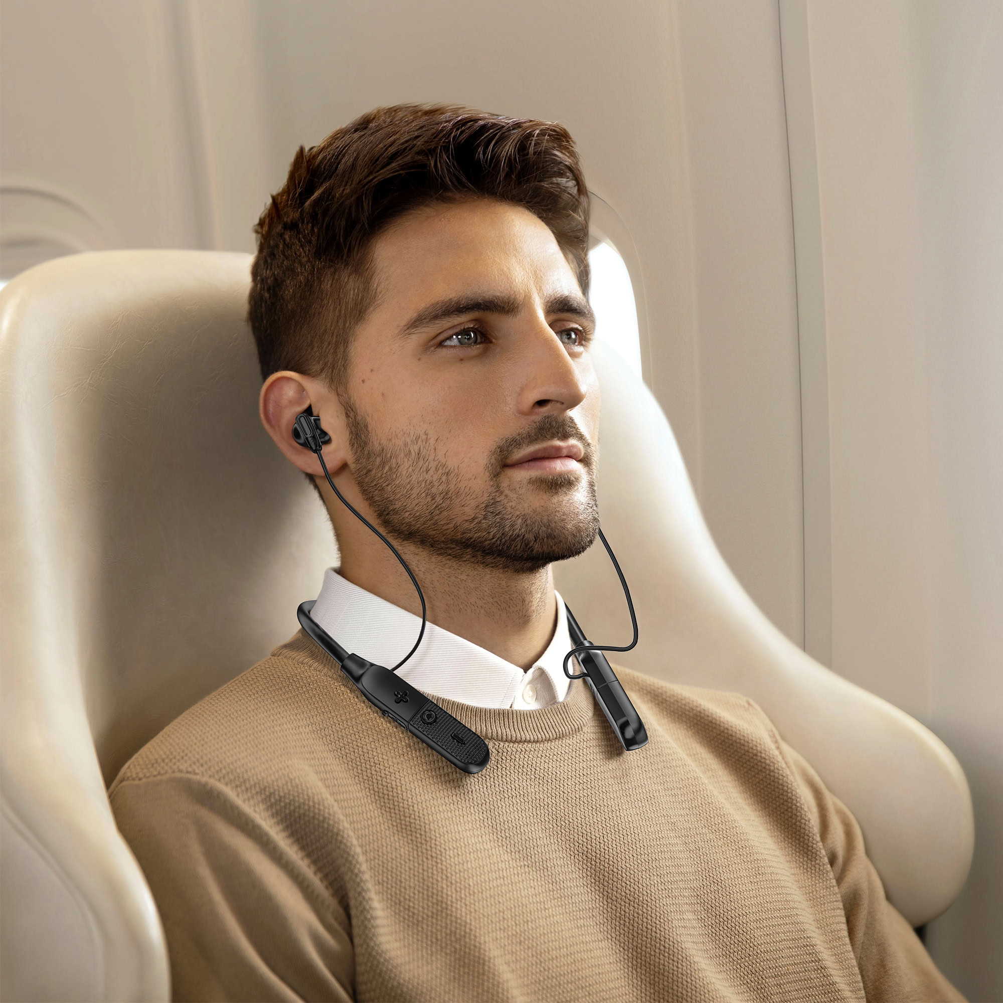 - Neckband ontwerp – comfortabel en licht voor langdurig dragen