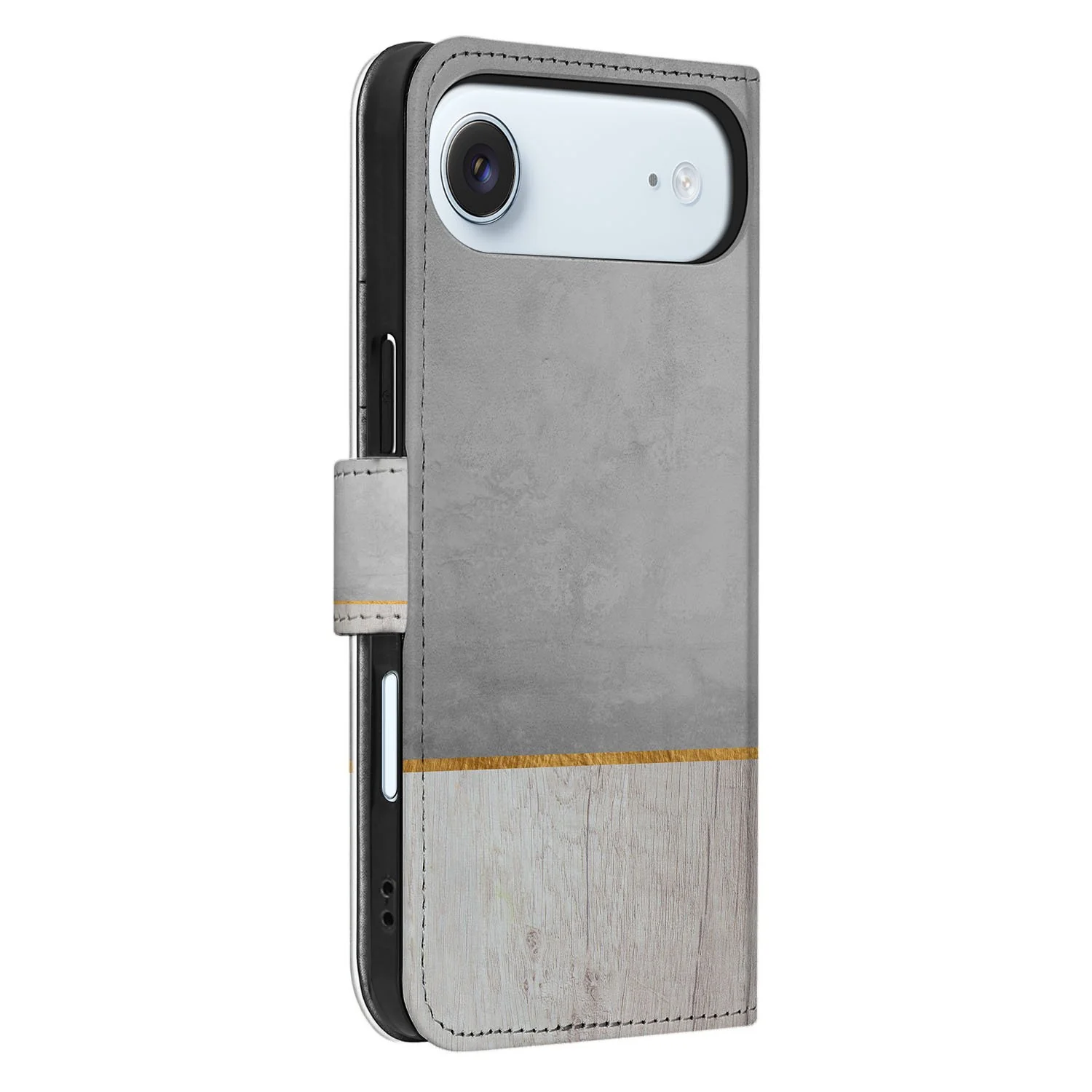 De Wood Concrete look combineert warme houttinten met stoere betonaccenten, waardoor je iPhone Air direct een eigen karakter krijgt. Het robuuste kunstleren frame voelt betrouwbaar aan en de zachte binnenkant beschermt het toestel tegen krassen en vuil. Samen vormen ze een elegante, complete omarming die je telefoon rondom beschermt zonder in te leveren op stijl.