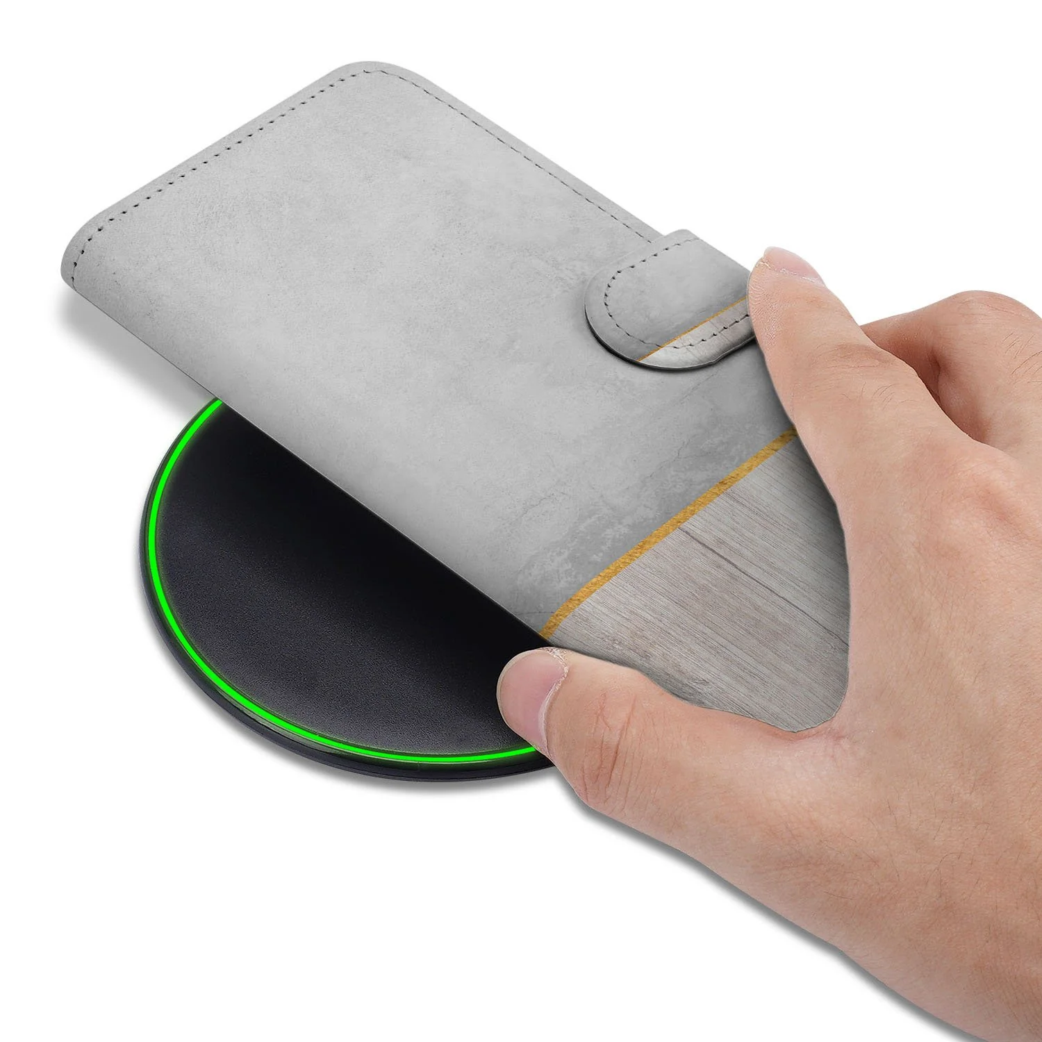 De combinatie van stevige constructie en zachte interieurs biedt optimale bescherming tegen dagelijkse slagen en krassen. De Wood Concrete afwerking geeft een moderne, subtiele uitstraling die zowel casual als zakelijk inpikt. Het ingebouwde card-slots systeem houdt passen veilig op zijn plek, terwijl het vakje achter de pashouders ruimte biedt aan briefgeld of bonnetjes.