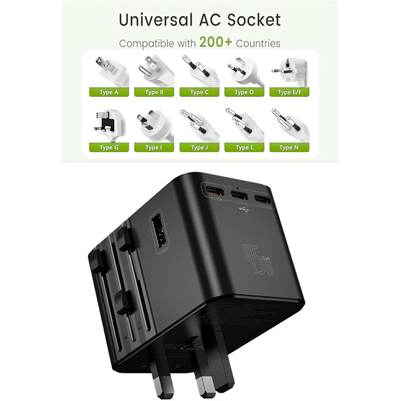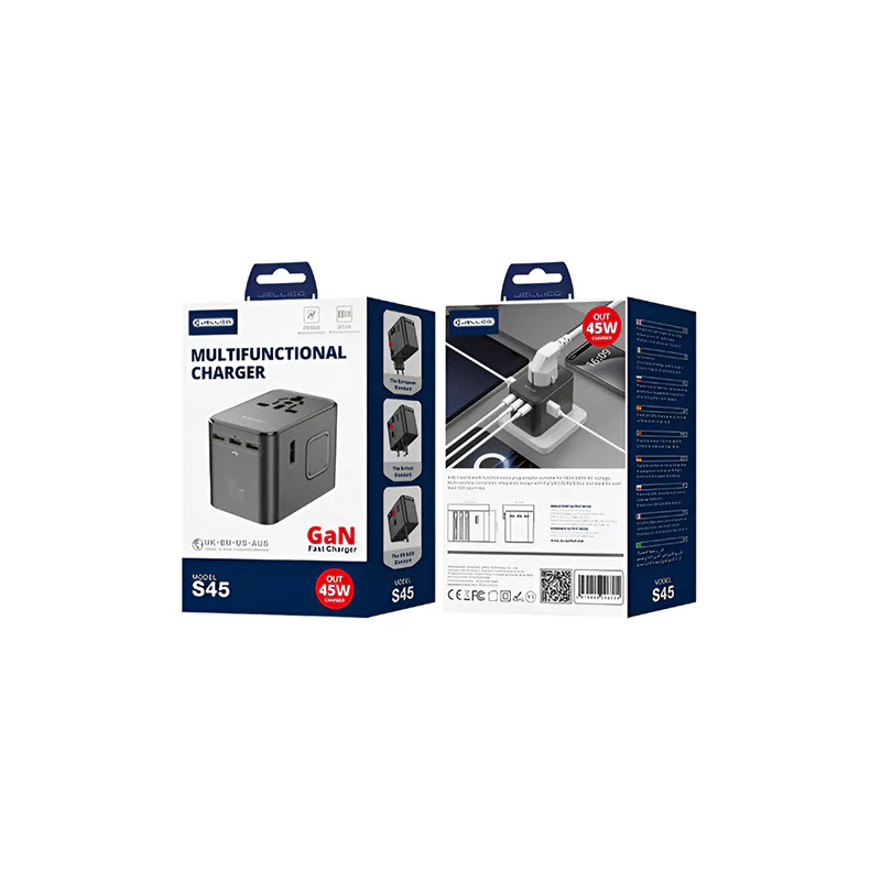 De S45 All-in-1 Oplader 45W is jouw complete oplossing voor het opladen van meerdere apparaten tegelijk. Met een totaal vermogen tot 2500W en ondersteuning voor snelladen via USB-C en USB-A poorten, is deze lader ideaal voor zowel thuis als onderweg.